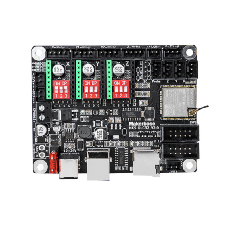 MKS DLC32 – це високопродуктивна 32-бітна плата керування, розроблена компанією Makerbase для настільних лазерних граверів та ЧПК (CNC) машин. Вона оснащена модулем ESP32-WROOM-32U з тактовою частотою 240 МГц, що забезпечує швидке та стабільне виконання завдань.