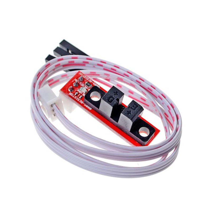 Кінцевик оптичний на платі, із проводом 50см розєм DuPont 3 Pin, використовується для точного визначення початкових координат у 3D-принтері. Встановлюється на кожну вісь пристрою також використовується принтером для автоматичного калібрування перед початком друку.
