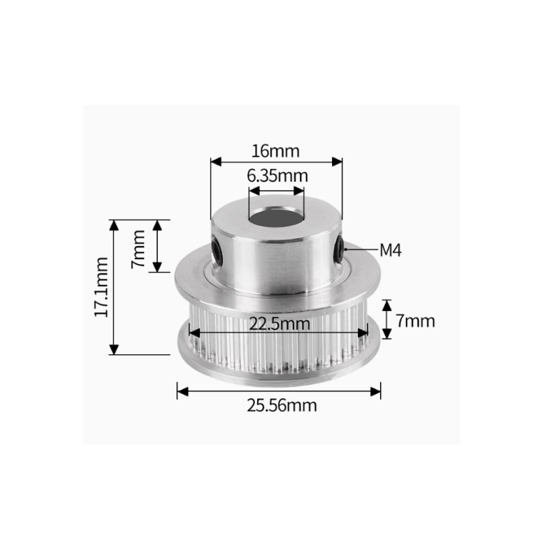 Окрім цього, в асортименті шківів GT2 наявні моделі з різними діаметрами отворів під вал. Ця модель має діаметр отвору 6,35 мм, що робить її сумісною з широким спектром обладнання.